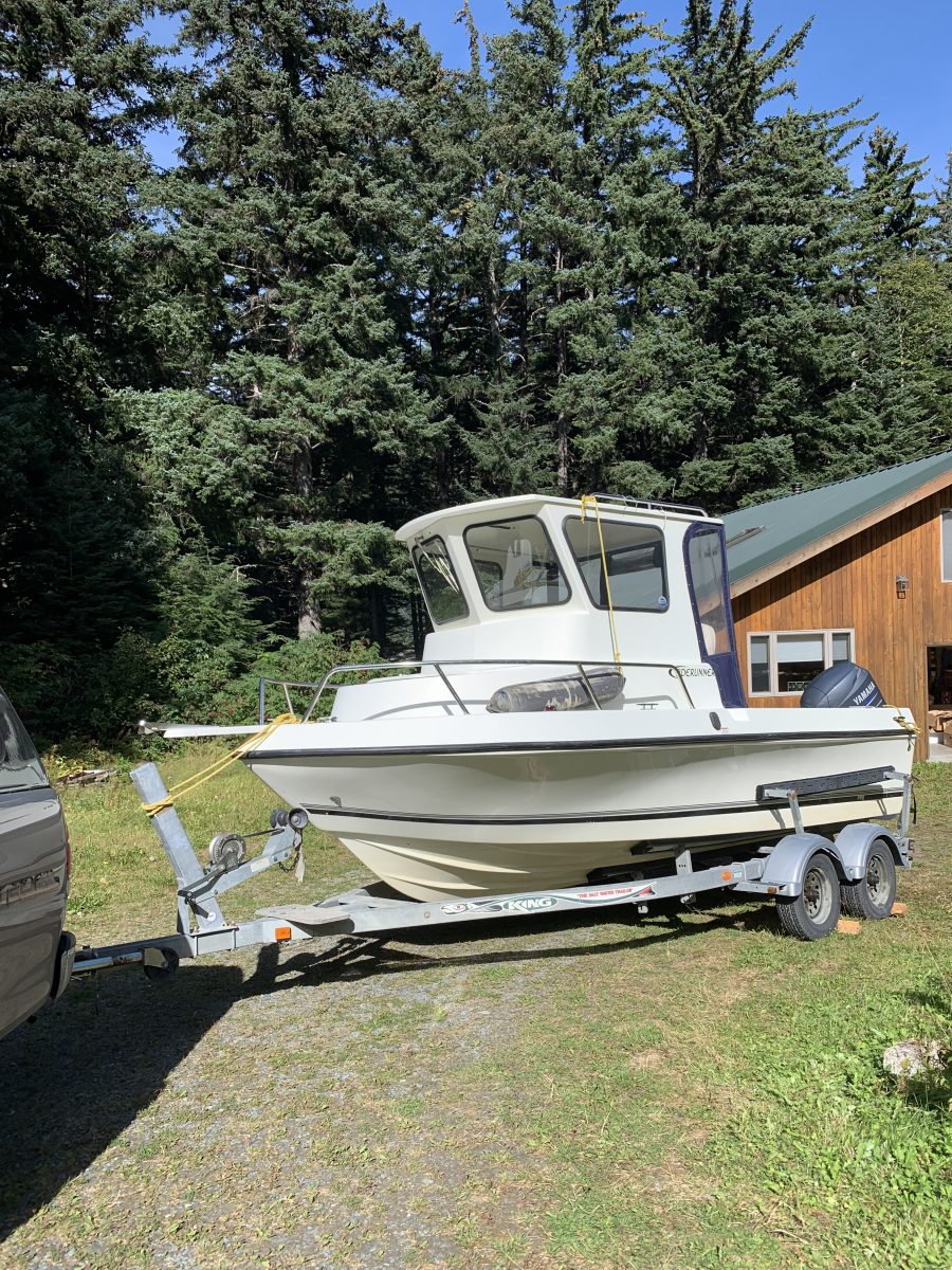 20′ fiberglass Palmer Boat 4 sale. 115 HP Yamaha motor, dual axle trailer, pot puller, down riggers, shrimp pots, long line for halibut or pots, bunk in wheel house- custom made canvas enclosure on wheel house, depth finder,