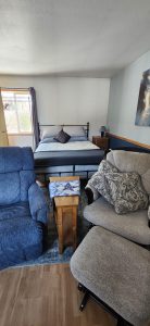 This apartment is available May 1st.  The rent includes all utilities, washer & dryer available downstairs, garbage, Starlink internet, fully furnished with bath towels, kitchen utensils, cookware, Keurig coffee maker, Firestick for TV, full refrigerator / freezer, etc.  There is a $150 cleaning deposit which is refundable if clean after renter leaves.  Apartment is upstairs above an office at the Duck In Car Wash across from Haines Hitch up RV park on the Union street side.  For more information please call Karen 928-662-7159.  If you want to see the apartment after April 30th, please call Jan Hill 907-303-0180