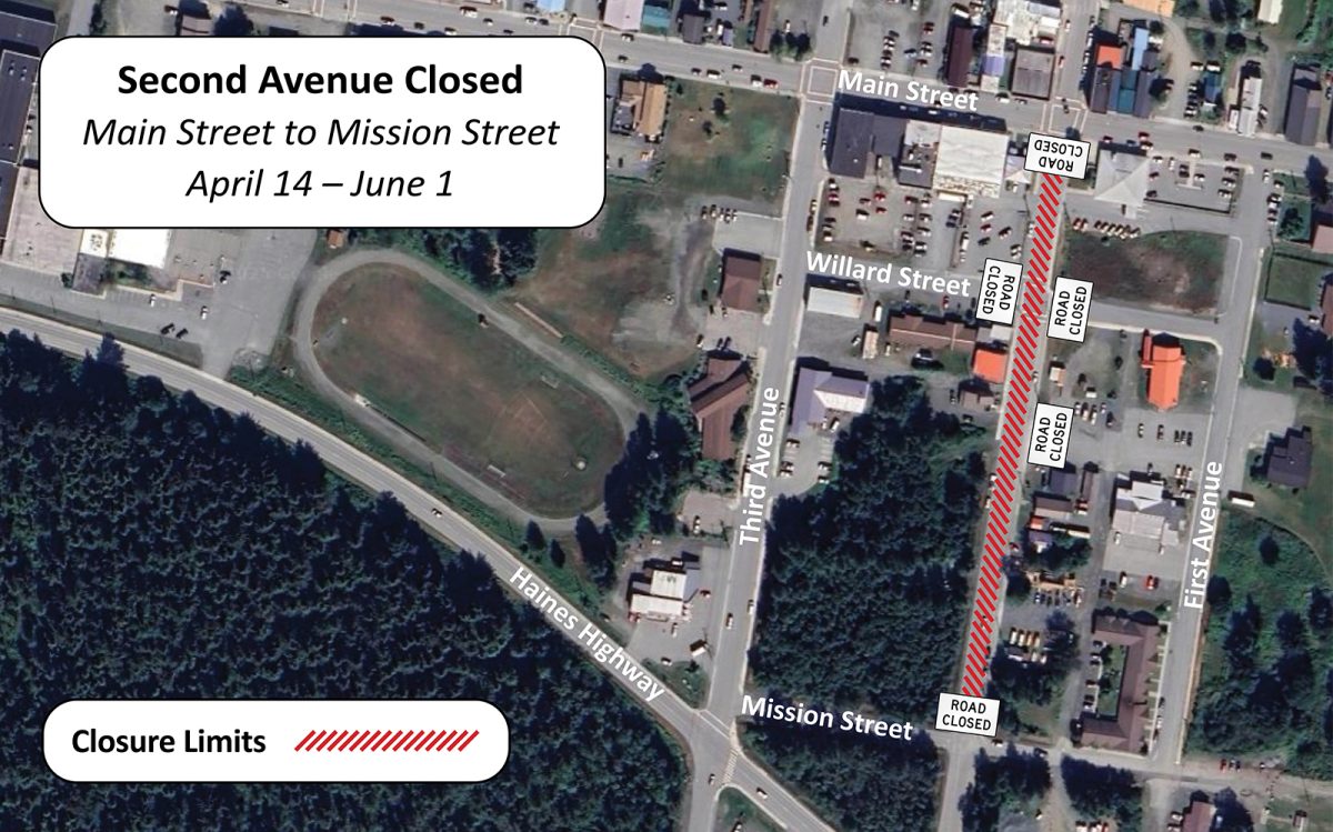 Starting Monday, April 14, Second Avenue from Main Street to Mission Street will be closed to all traffic. Motorists, pedestrians, and cyclists should heed all traffic signs and stay clear of the work zone, where Southeast Roadbuilders will be making a series of repairs to the roadway. The road will remain closed through June 1, 2025.