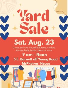Yard Sale on Saturday, August 23Aug 22, 2025Add us to your list for sales this weekend–up Young Road, second road on the right, first house on the right.